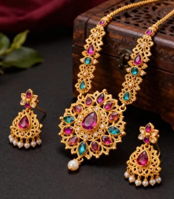 Elegant gold plated gem earring