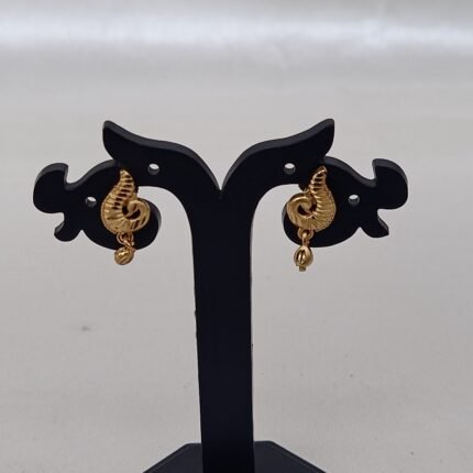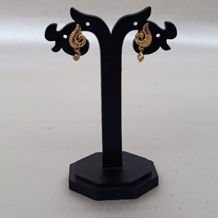 A delicate , gold plated earing with intricate detailing . Light weighted and elegant .
