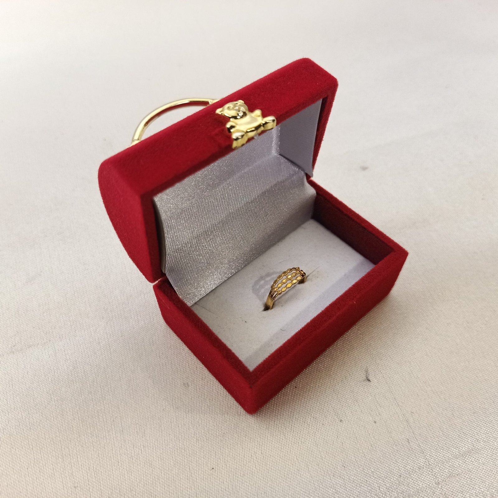A beautifully crafted gold plated ring featuring a textured Centre design that adds a unique touch of elegance. Its intricate detailing and smooth band make it perfect for everyday wear