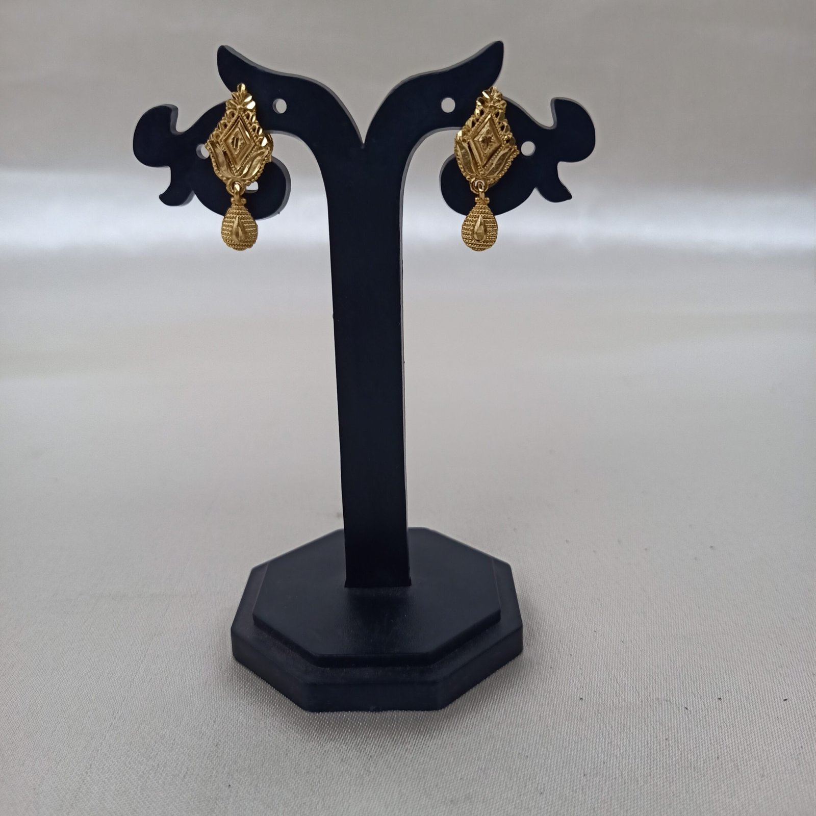 A delicate , gold plated stud earing with intricate detailing . Light weighted and elegant .