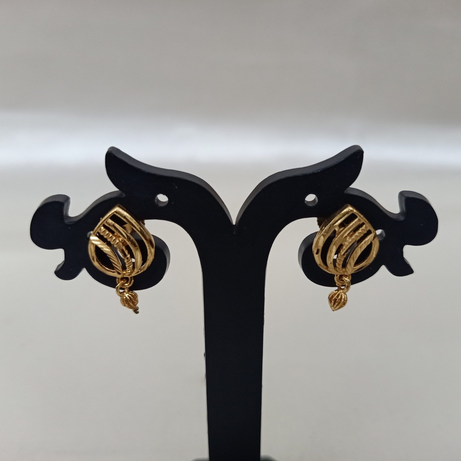 A delicate , gold plated stud earing with intricate detailing . Lightweighted and elegant .