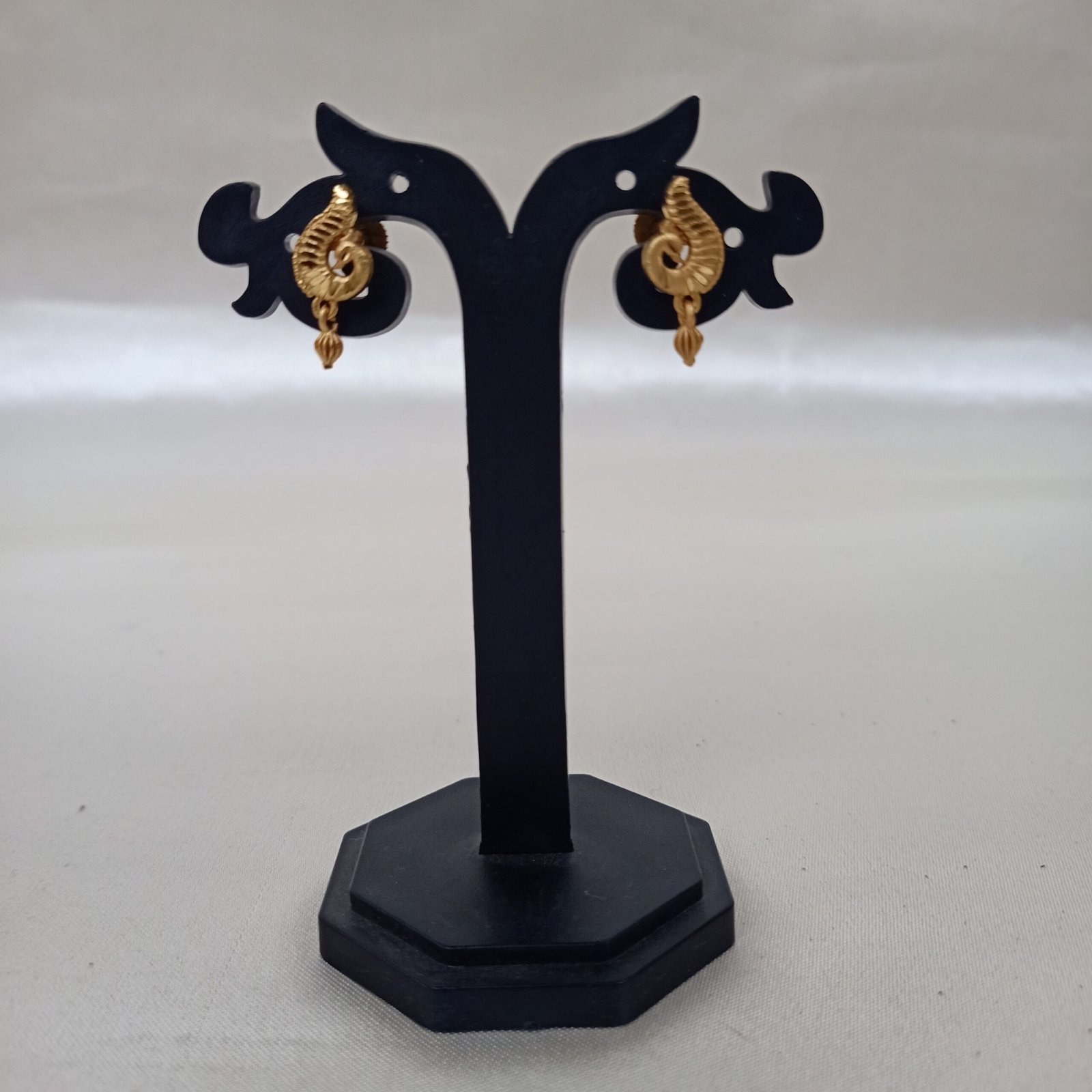 A delicate , gold plated stud earing with intricate detailing . Lightweighted and elegant .